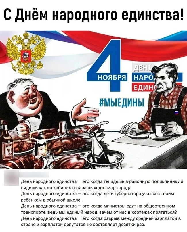 Народное единство- это когда топ менеджер госкорпорации получает 300 млн. руб , а военнослужащий контрактной службы 45т. р или водитель автобуса 60 вот это народное единство ? 😆😆😆Или в чем это единство