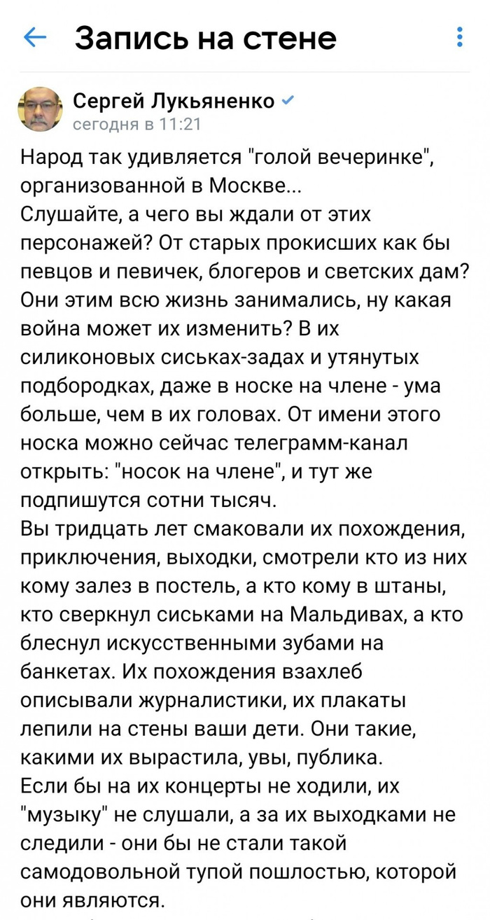 личное дело чё они делали на не публичной вечерине. :beach: хоть колом в жопе у киркорова ковыряли, визги всяких поплавских мне не понятно, как будто за время СВО она ни разу не бухала и не сношалась - двойные стандарты и отвлечение электората от цен на яйца и прочее дерьмо. :ultra: |