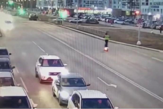 Екатеринбуржец снял на видео, как чуть не сбил человека. Всё решила секундаПрохожий был почти невидим на дороге