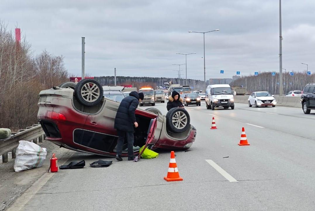 На Кольцовском тракте опрокинулся автомобиль. Видео момента ДТП, которое устроил «шашечник» на MazdaВ аварии пострадали три автомобиля