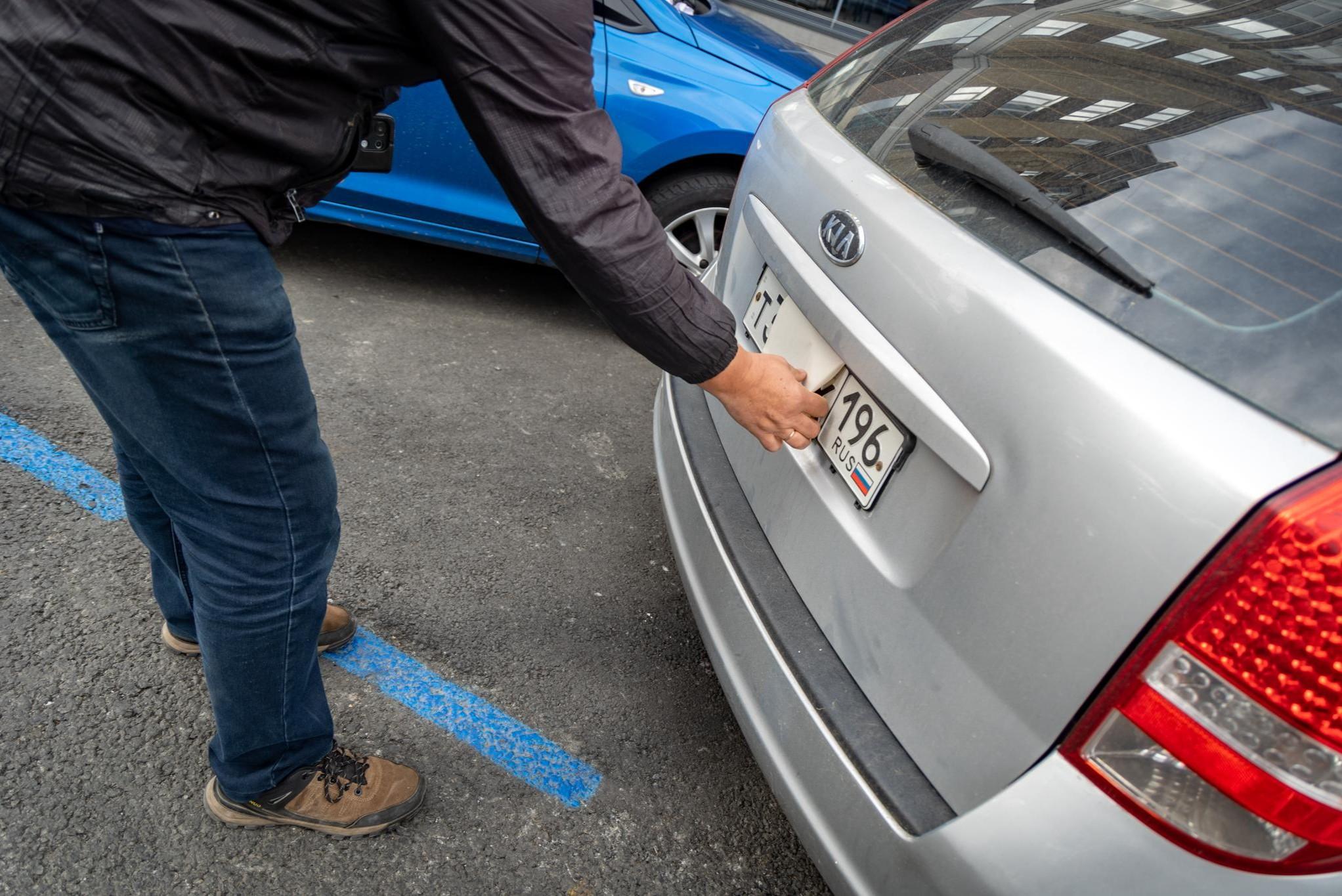 В Екатеринбурге появились люди, срывающие визитки с госномеров на платных парковках: видеоНа просьбу представиться они убегают