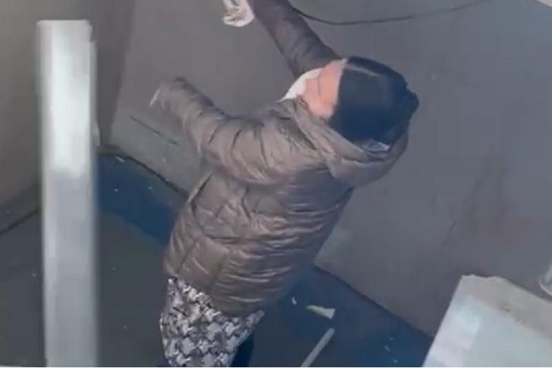 «Красиво зашел»: в Академическом неадекват разгромил новый подъезд и уехал прочь. ВидеоМолодой человек решил выплеснуть энергию