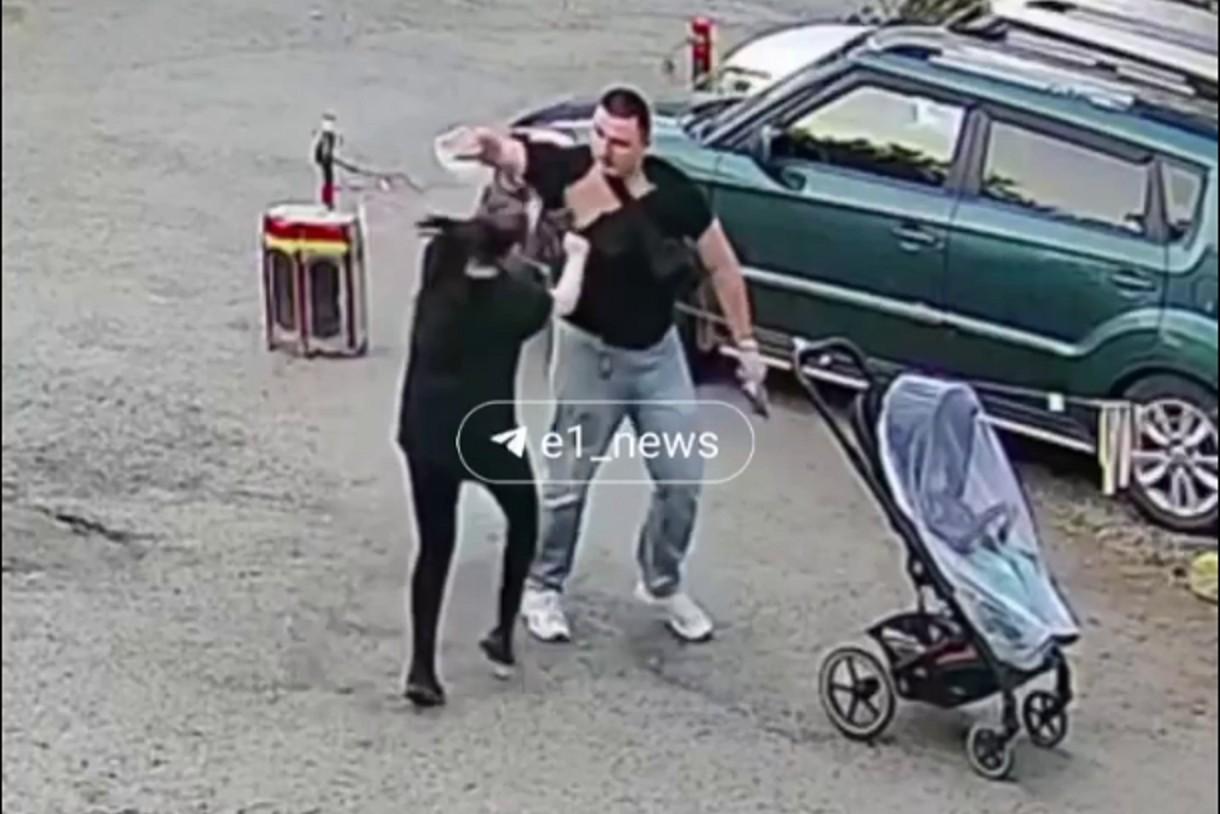 В Екатеринбурге разъяренный амбал разбил клюшкой лобовое стекло легковушки. Его успокаивала женщина с младенцемКонфликт произошел из-за того, что водители не поделили дорогу