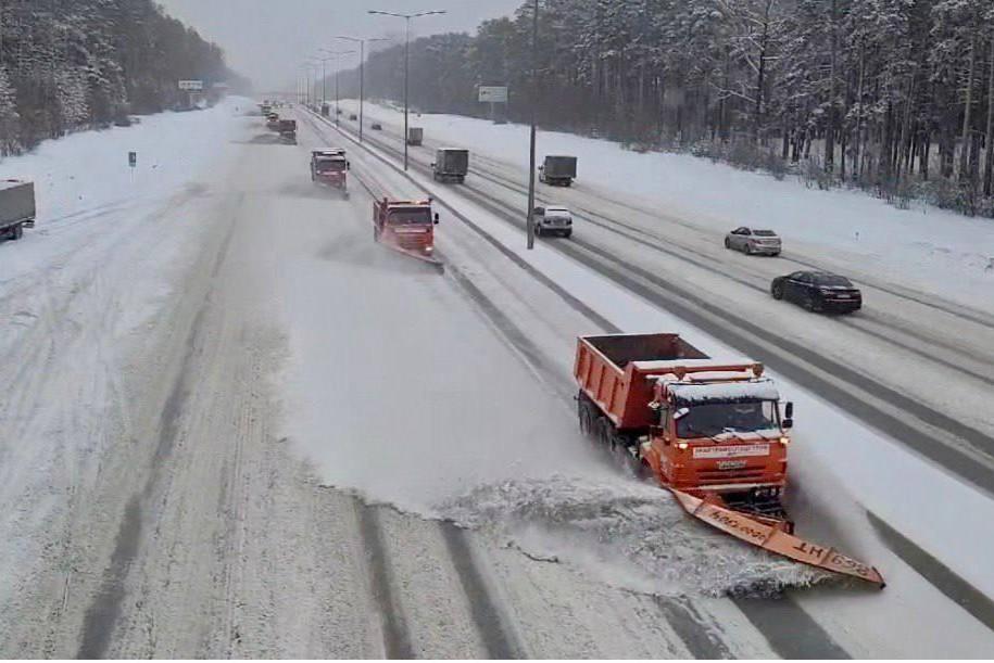В трёх часах езды от Екатеринбурга замело большую трассу. Путь расчищают тракторыМестным водителям срочно потребовалась зимняя резина