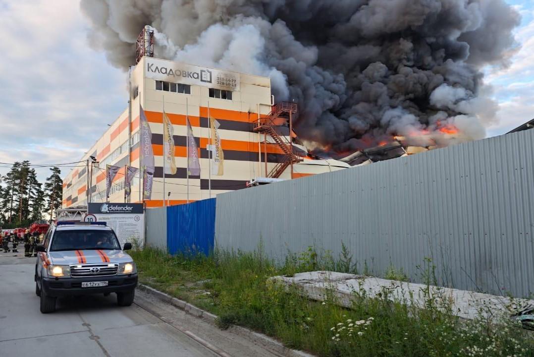 Спасатели на вторые сутки потушили гигантский склад в ЕкатеринбургеВо время пожара часть здания обрушилась
