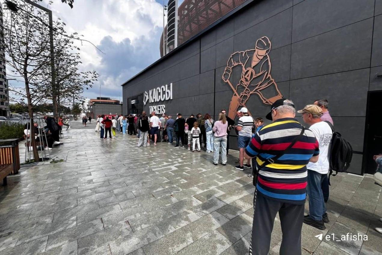 В центре Екатеринбурга выстроилась гигантская очередь за бесплатными билетами. Счастливчики пойдут с ними на хоккейУГМК-арена собирает зрителей для участия в тестовых матчах